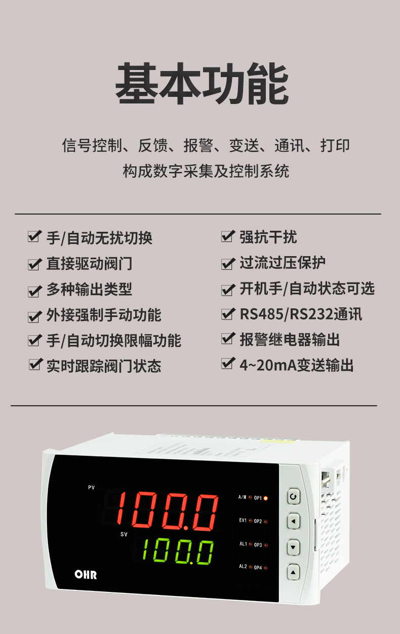 虹潤公司是專業(yè)生產智能手操器的國家專精特新“小巨人”企業(yè),生產的手動操作器,具有手自動無擾切換,直接調節(jié)閥門,多種輸出類型,外接強制手動功能,高抗干擾等特點。產品獲得閥門自動手動無擾動操作控制方法及裝置、模糊PID控制儀及控制方法、移相觸發(fā)控制器等3項國家標準,主持起草工業(yè)過程控制系統(tǒng)用模擬輸入兩位或多位輸出儀表、流程工業(yè)中電氣/儀表和控制系統(tǒng)的試車等2項國家標準,以及通信系統(tǒng)多通道數據采集控制終端規(guī)范軍用標準,參與國際5G標準制定,取得手動操作器等3項相關軟件著作權。產品廣泛應用于電力、石化、冶金、化工、造紙、食品、輕工、制藥、熱處理、水處理、機械配套等各種工業(yè)現(xiàn)場。