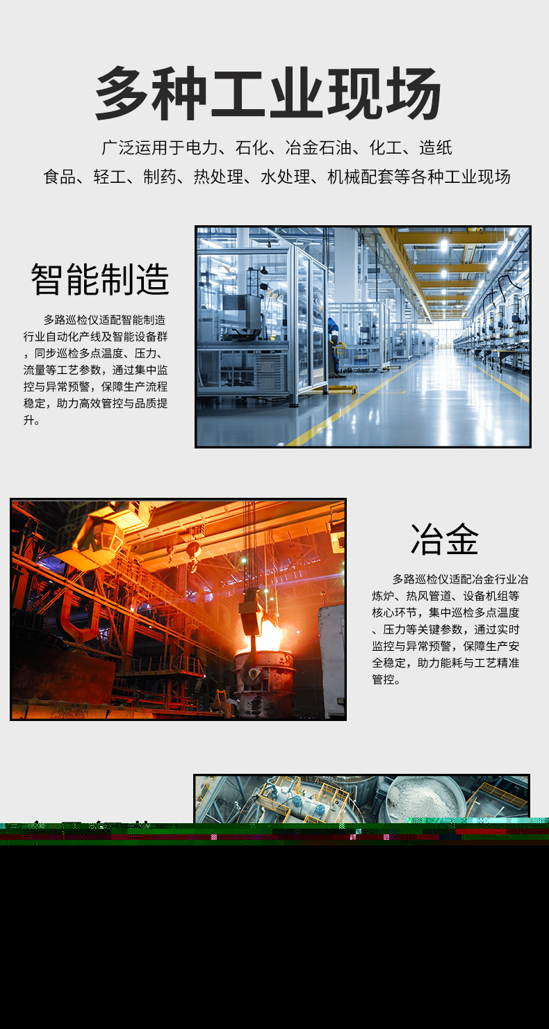 虹潤公司是專業(yè)生產(chǎn)多路溫度巡檢儀的國家專精特新“小巨人”企業(yè),生產(chǎn)的多回路測量顯示控制儀,具有8路/16路測量通道,全切換信號輸入,多種輸出類型,高抗干擾,RS485/RS232通訊等特點。產(chǎn)品獲得巡回檢測顯示方法及裝置、儀表殼體等2項國家發(fā)明專利,主持起草工業(yè)過程控制系統(tǒng)用模擬輸入兩位或多位輸出儀表、物聯(lián)網(wǎng)智能溫度儀表通用技術(shù)條件等2項國家標(biāo)準(zhǔn),以及通信系統(tǒng)多通道數(shù)據(jù)采集控制終端規(guī)范軍用標(biāo)準(zhǔn),參與國際5G標(biāo)準(zhǔn)制定,取得多回路測量顯示控制儀等3項相關(guān)軟件著作權(quán)。產(chǎn)品廣泛應(yīng)用于電力、石化、冶金、制藥、水處理、機(jī)械配套等各種工業(yè)現(xiàn)場。