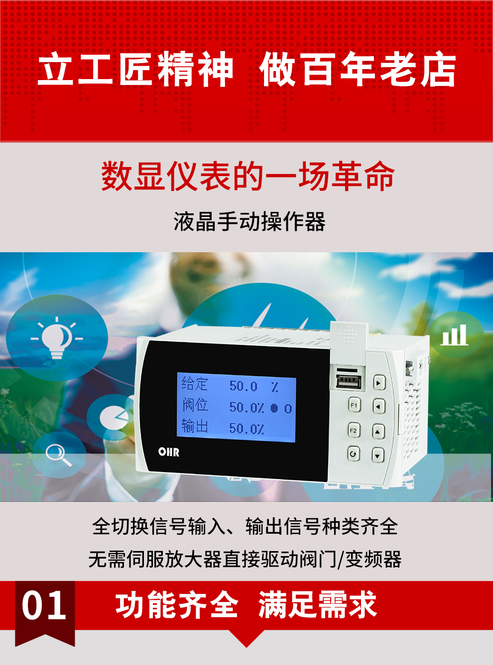 虹潤公司是專業(yè)生產(chǎn)智能手操器的國家專精特新“小巨人”企業(yè),生產(chǎn)的液晶手動操作器,具有全切換信號輸入,通道之間相互隔離,手自動無擾動切換,配上位機(jī)管理軟件等特點(diǎn)。產(chǎn)品獲得閥門自動手動無擾動操作控制方法及裝置、模糊PID控制儀及控制方法、移相觸發(fā)控制器等3項(xiàng)國家標(biāo)準(zhǔn),主持起草工業(yè)過程控制系統(tǒng)用模擬輸入兩位或多位輸出儀表、流程工業(yè)中電氣/儀表和控制系統(tǒng)的試車等2項(xiàng)國家標(biāo)準(zhǔn),以及通信系統(tǒng)多通道數(shù)據(jù)采集控制終端規(guī)范軍用標(biāo)準(zhǔn),參與國際5G標(biāo)準(zhǔn)制定,取得手動操作器等3項(xiàng)相關(guān)軟件著作權(quán)。產(chǎn)品廣泛應(yīng)用于電力、石化、冶金、化工、造紙、食品、輕工、制藥、熱處理、水處理、機(jī)械配套等各種工業(yè)現(xiàn)場。