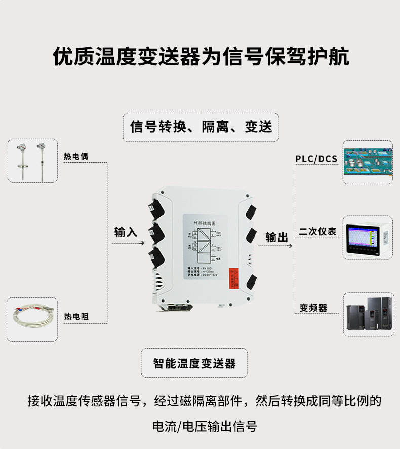 虹潤公司是專業(yè)生產(chǎn)溫度變送器的國家專精特新“小巨人”企業(yè)。生產(chǎn)的溫度變送器,具有采用磁隔離技術,配套編程器可修改參數(shù),抗干擾能力強,穩(wěn)定性好,帶RS485或HART通訊等特點。該產(chǎn)品不僅通過HART基金會認證、德國萊茵 CE 認證與 SIL 功能安全認證,還獲得具備減震抗干擾能力的溫度變送器、信號隔離器、一種二端子模塊、無源信號隔離器等4項國家發(fā)明專利,主持起草物聯(lián)網(wǎng)智能溫度儀表、現(xiàn)場設備工具(FDT)接口規(guī)范、工業(yè)過程測量和控制系統(tǒng)用溫度變送器等3項國家標準,以及通信系統(tǒng)多通道數(shù)據(jù)采集控制終端規(guī)范軍用標準,參與國際5G標準制定,取得溫度變送器等5項相關軟件著作權。產(chǎn)品廣泛應用于石油、電力、化工,冶金、制藥、紡織、橡膠制造等工業(yè)領域現(xiàn)場自動化測溫過程。