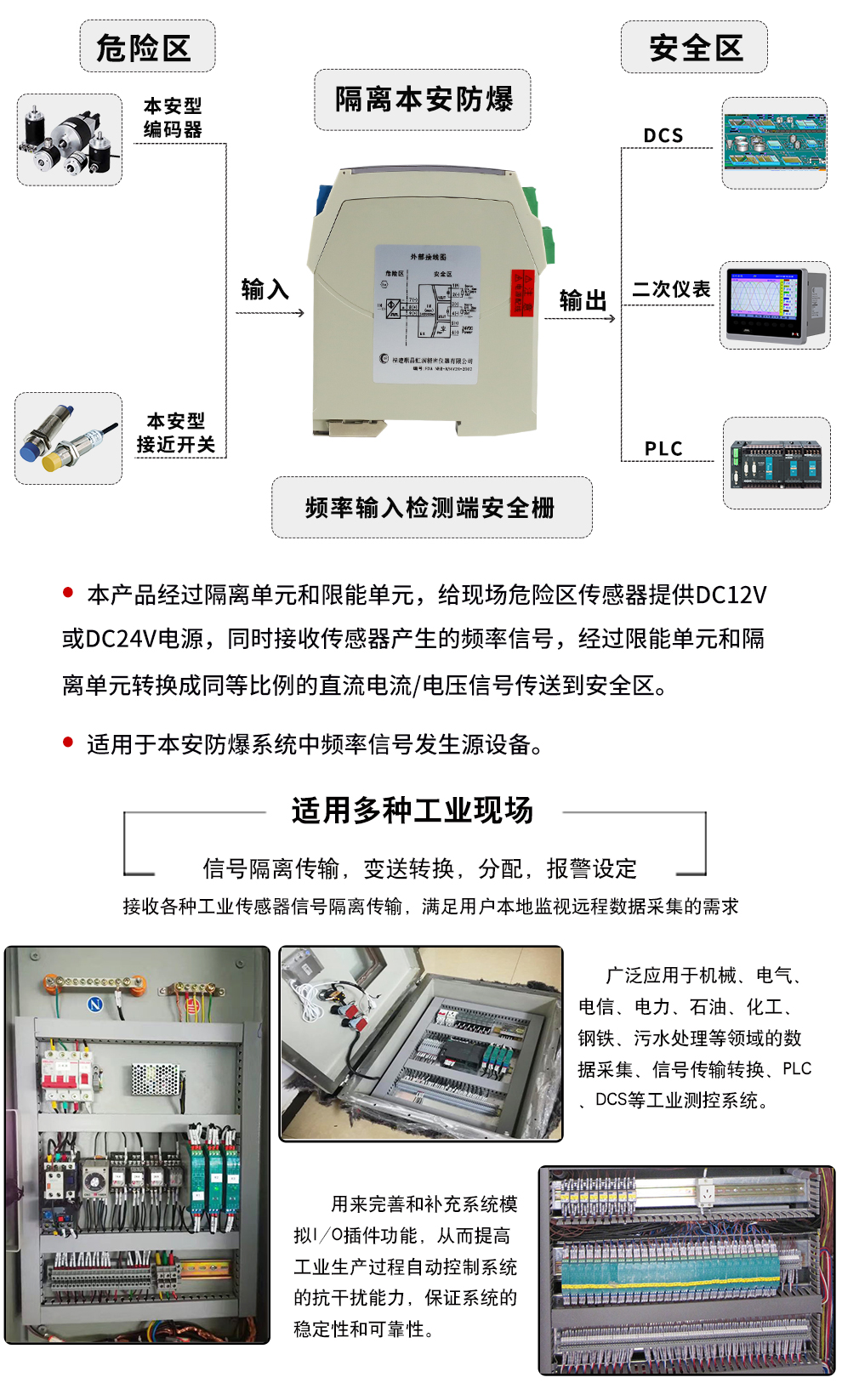 虹潤(rùn)公司是專業(yè)生產(chǎn)隔離器的國家專精特新“小巨人”企業(yè)。生產(chǎn)的隔離式安全柵涵蓋信號(hào)頻率輸入、電壓輸入、電流輸入、熱電阻輸入、熱電偶輸入、開關(guān)量輸入等多種產(chǎn)品類型。產(chǎn)品獲得具備減震抗干擾能力的溫度變送器、信號(hào)隔離器、一種二端子模塊、無源信號(hào)隔離器等4項(xiàng)國家發(fā)明專利,主持起草物聯(lián)網(wǎng)智能溫度儀表、現(xiàn)場(chǎng)設(shè)備工具(FDT)接口規(guī)范、工業(yè)過程測(cè)量和控制系統(tǒng)用溫度變送器等3項(xiàng)國家標(biāo)準(zhǔn),以及通信系統(tǒng)多通道數(shù)據(jù)采集控制終端規(guī)范軍用標(biāo)準(zhǔn)。參與國際5G標(biāo)準(zhǔn)制定,取得智能隔離式安全柵等4項(xiàng)相關(guān)軟件著作權(quán)。產(chǎn)品廣泛應(yīng)用于石油、電力、化工,冶金、智能制造、污水處理等諸多行業(yè)。