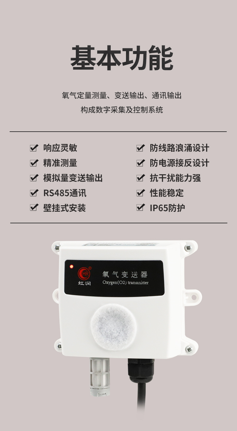 虹潤公司是專業(yè)生產環(huán)境監(jiān)測儀表的國家專精特新“小巨人”企業(yè)。生產的氧氣變送器,具有采用電化學原理,響應靈敏,準確度高,低功耗,模擬量變送輸出或RS485通訊等特點。產品獲得一種農業(yè)監(jiān)控變送器、一種儀表電源等2項實用新型專利,主持起草現場設備集成等5項智能制造國家標準,以及現場設備工具(FDT)接口規(guī)范、物聯網總體技術智能傳感器特性與分類等2項國家標準,參與國際5G標準制定,取得農業(yè)監(jiān)控變送器等3項相關軟件著作權。產品廣泛應用于機房、配電站、地下車庫、工廠倉庫、食品儲存、養(yǎng)殖場、果蔬林園等環(huán)境場合對氧氣濃度的檢測。
