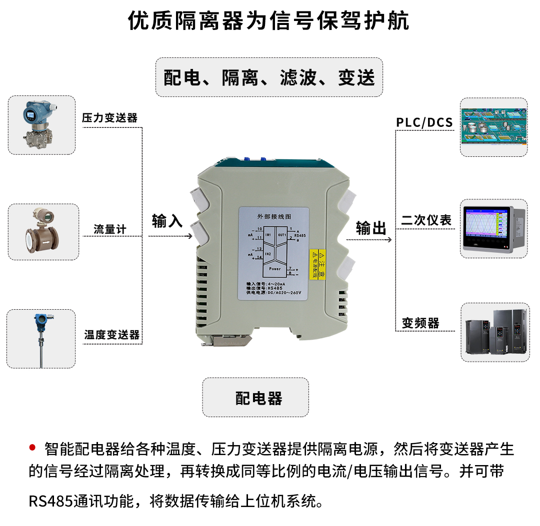 虹潤公司是專業(yè)生產(chǎn)隔離器的國家專精特新“小巨人”企業(yè)。生產(chǎn)的導軌式智能配電器,具有配接二三線制變送器,輸入輸出電源三隔離,響應時間快,傳輸精度0.1%FS,支持485通訊輸出等特點。產(chǎn)品獲得信號隔離器、一種二端子模塊、無源信號隔離器等3項國家發(fā)明專利,主持起草現(xiàn)場設備工具(FDT)接口規(guī)范、工業(yè)過程測量和控制系統(tǒng)用隔離式安全柵、工業(yè)過程測量和控制系統(tǒng)用配電器等3項國家標準,以及通信系統(tǒng)多通道數(shù)據(jù)采集控制終端規(guī)范軍用標準。參與國際5G標準制定。,取得智能隔離器等2項相關(guān)軟件著作權(quán)。產(chǎn)品廣泛應用于石油、化工,冶金、電力、食品、光伏能源、污水處理等需要電隔離的工業(yè)自動化控制系統(tǒng)。