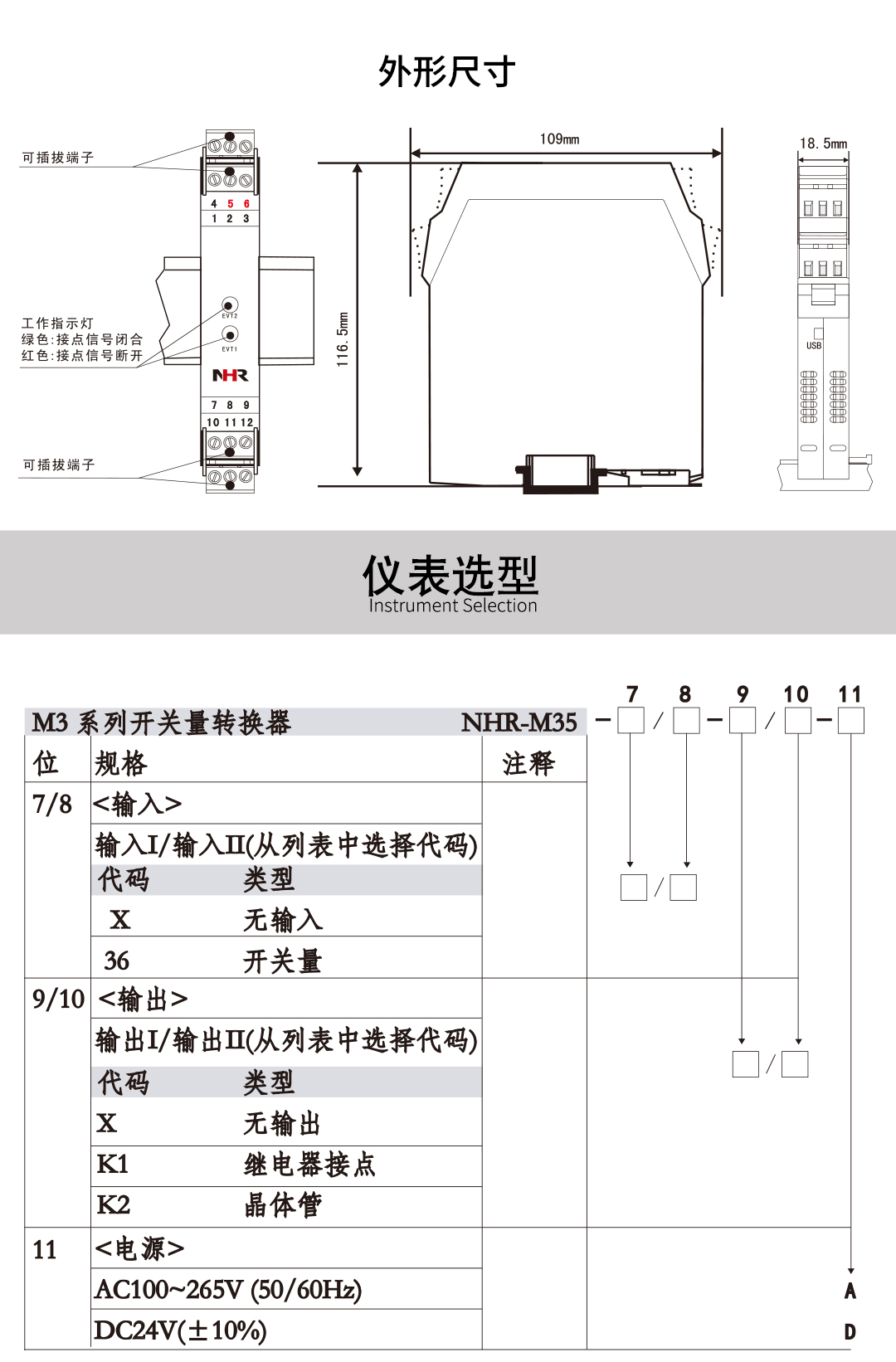 NHR-M35系列開(kāi)關(guān)量轉(zhuǎn)換器