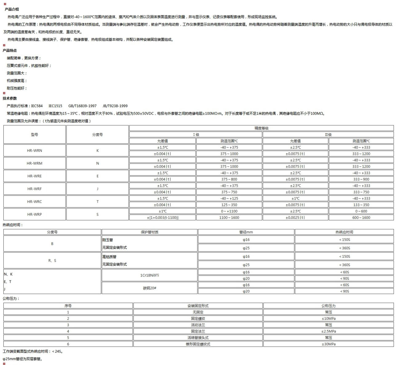 熱電偶(thermocouple)是溫度測量儀表中常用的測溫元件,它直接測量溫度,并把溫度信號轉換成熱電動勢信號,通過電氣儀表(二次儀表)轉換成被測介質的溫度。各種熱電偶的外形常因需要而不相同,但是它們的基本結構卻大致相同,通常由熱電極、絕緣套保護管和接線盒等主要部分組成,通常和顯示儀表、記錄儀表及電子調節(jié)器配套使用。